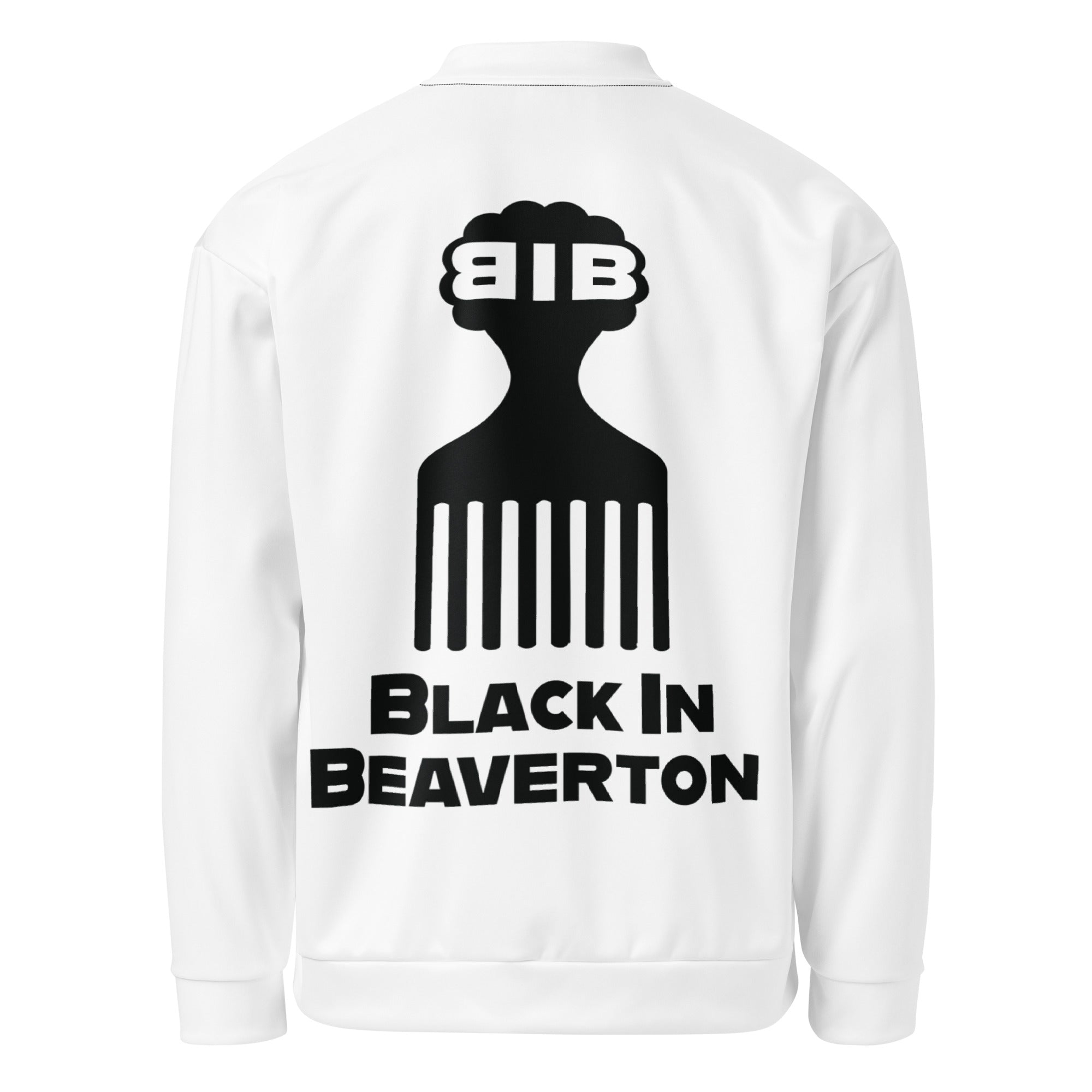 The Black In Beaverton bomber jacket is effortless cool with purpose, featuring a bold back logo that signals confidence, culture, and community pride without saying a word. It’s made for those who move through the world valuing humanity first, leading with love, and honoring Black culture as the heartbeat of America. This jacket doesn’t just complete the fit; it represents who you are and what you stand for.